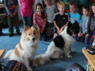 Kyra und Kasha hatten ihre ersten Einsätze als Schulbesuchshunde und wie man auf den Fotos gut sehen